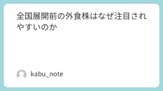 光フードサービスを例に考えてみるはじめにこれまでの記事では、最近上場した外食株の比較外食株と株主優待の関係について、整理してきました。今回はその続きとして、「全国展開前」の外食株が、なぜ投資家から注目されやすいのかという点を、光フードサービ...