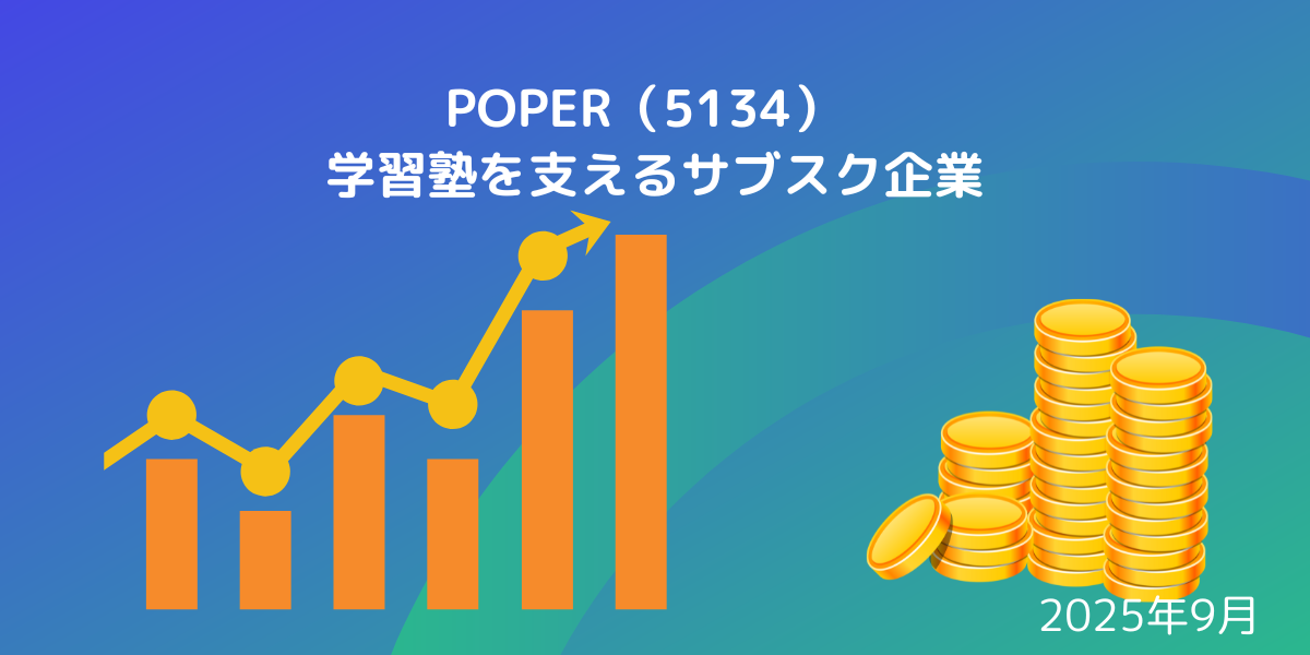 今日は、私が注目している小型株のひとつ POPER(ポパー)[5134] をご紹介します。学習塾を運営している方なら、もしかしたら名前を聞いたことがあるかもしれません。
