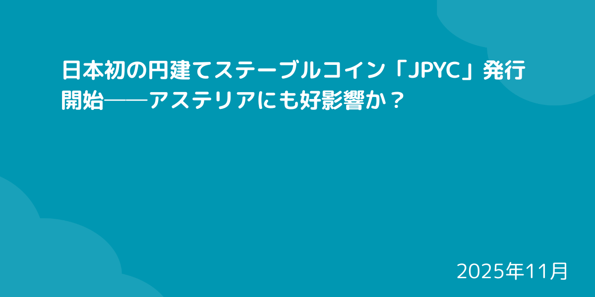 次の1〜2年、JPYCの発行量とアステリアの動きを